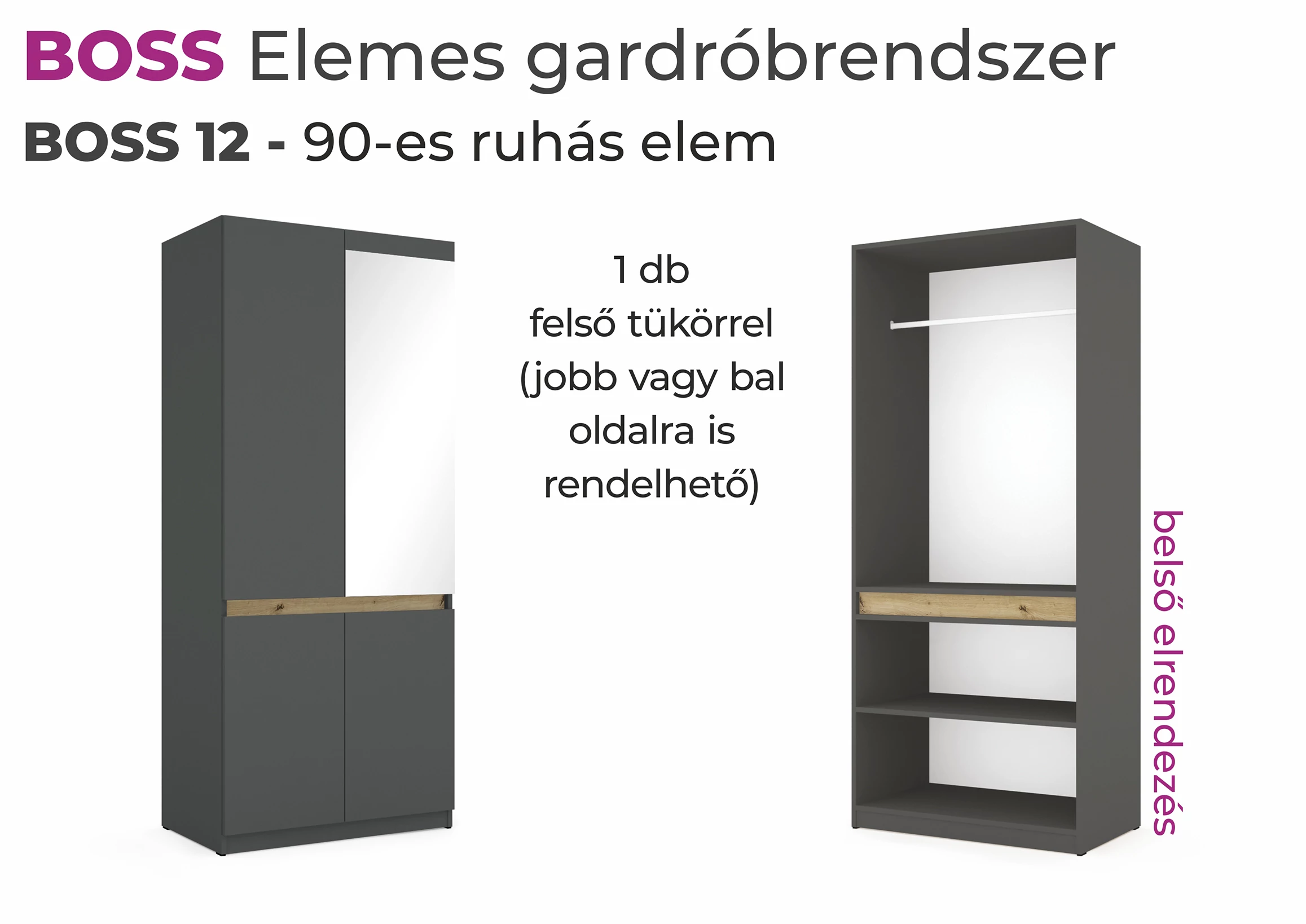 Boss elemes gardrób - 90-es ruhás elem (felül 1 tükrös)