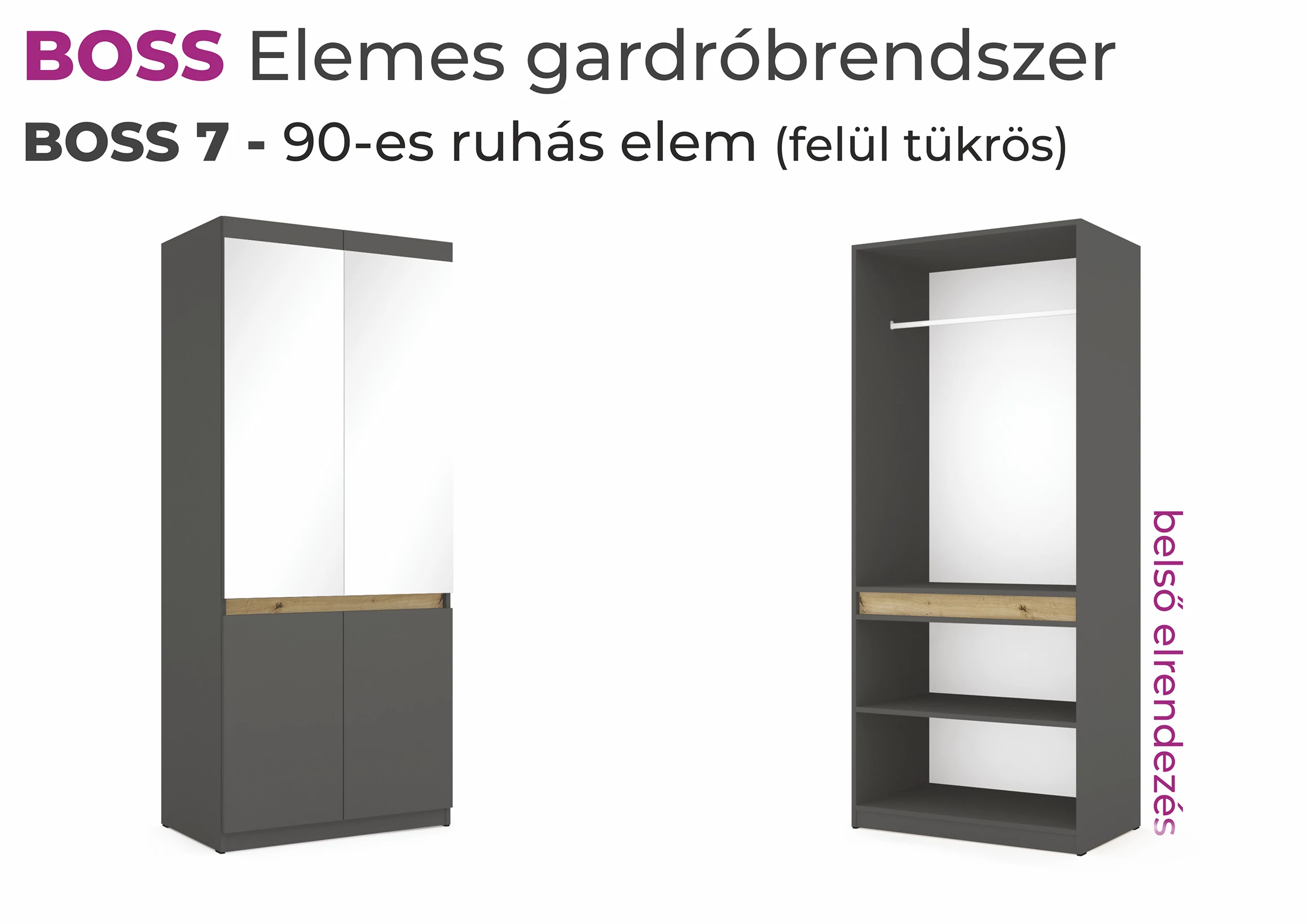 Boss elemes gardrób - 90-es ruhás elem (felül tükrös)