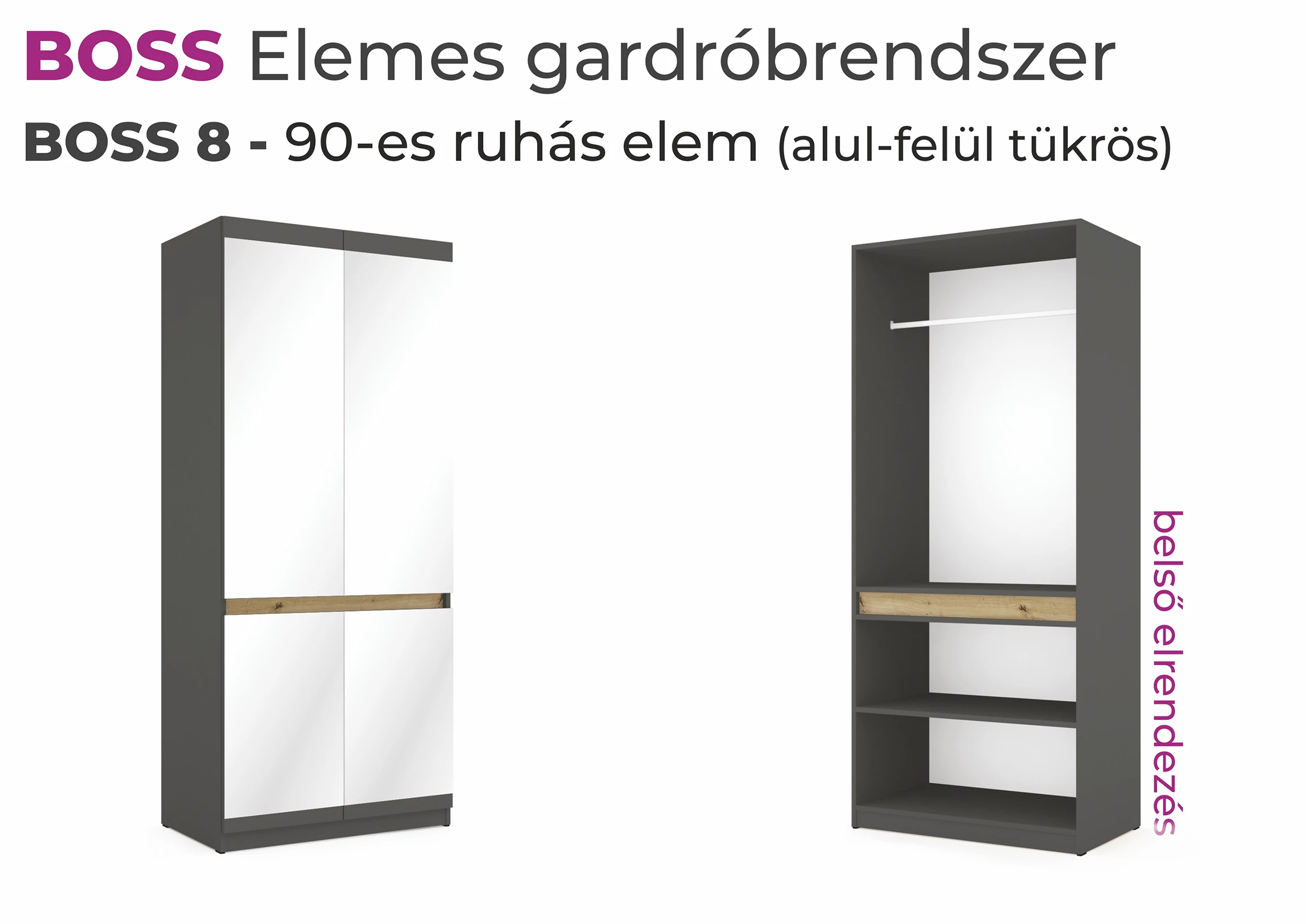 Boss elemes gardrób - 90-es ruhás elem (alul-felül tükrös)