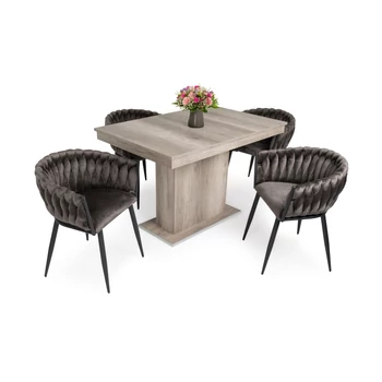 Flóra asztal 120 cm (canyon tölgy) + 4 db Deluxe (barna)